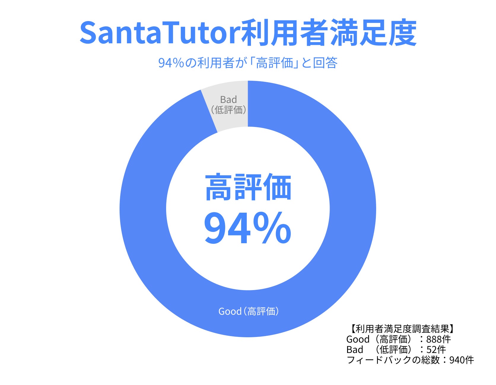 この高い評価結果から、Santa Tutorが多くの学習者の疑問を適切に解決し、質の高い学習を提供していることがわかります。