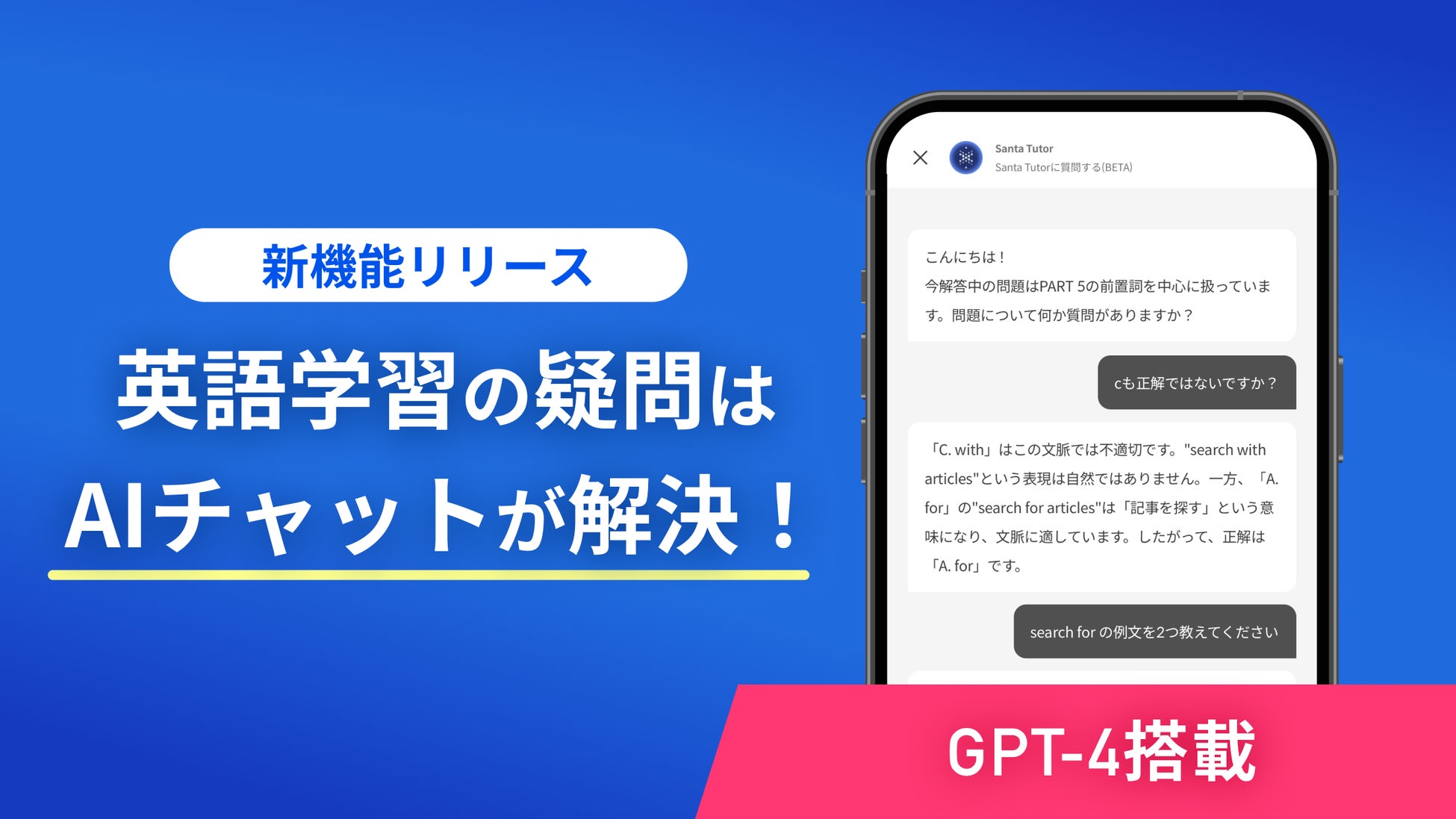 Santaアルク、GPT-4を搭載した「Santaチューター」機能を追加。AIの力でよりスムーズな英語学習をサポート