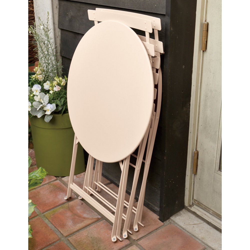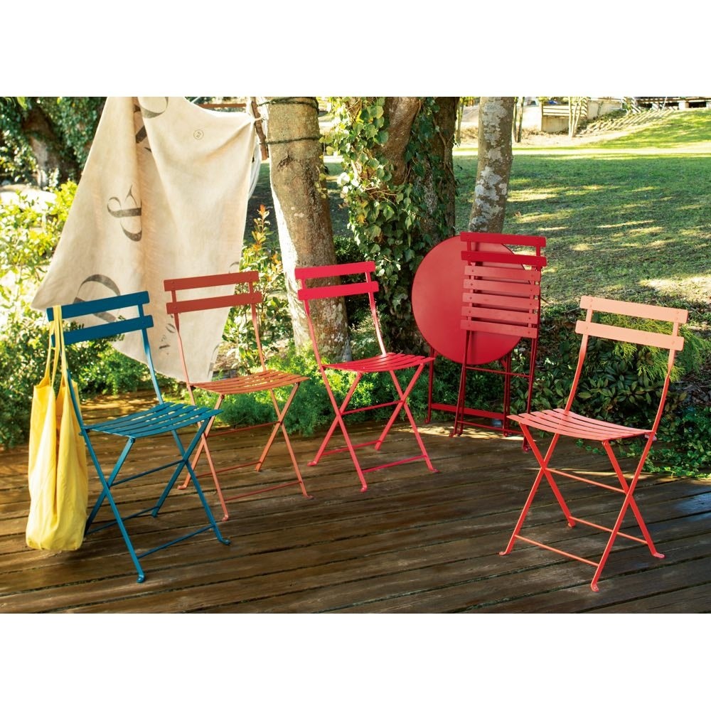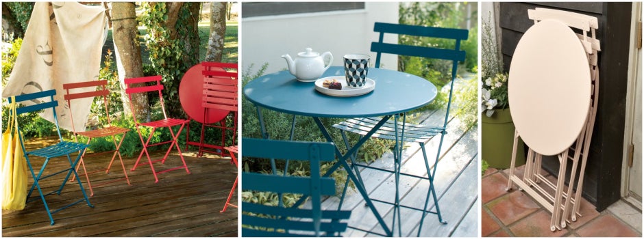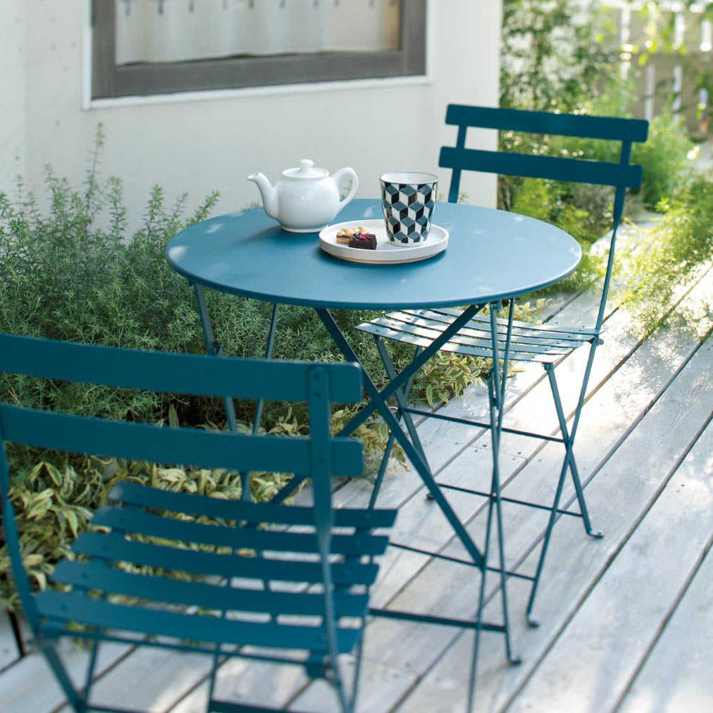 フランスで130年以上愛されるテーブル&チェア。15色から選べるカラフルな色合いが人気華奢でスタイリッシュなデザインながら、頑丈で、自動車にも使われる特殊塗装を施しているため、雨やサビに強いのも魅力です。コンパクトなサイズなので、狭いお庭やベランダでも使いやすく、未使用時は折り畳むことができます。
