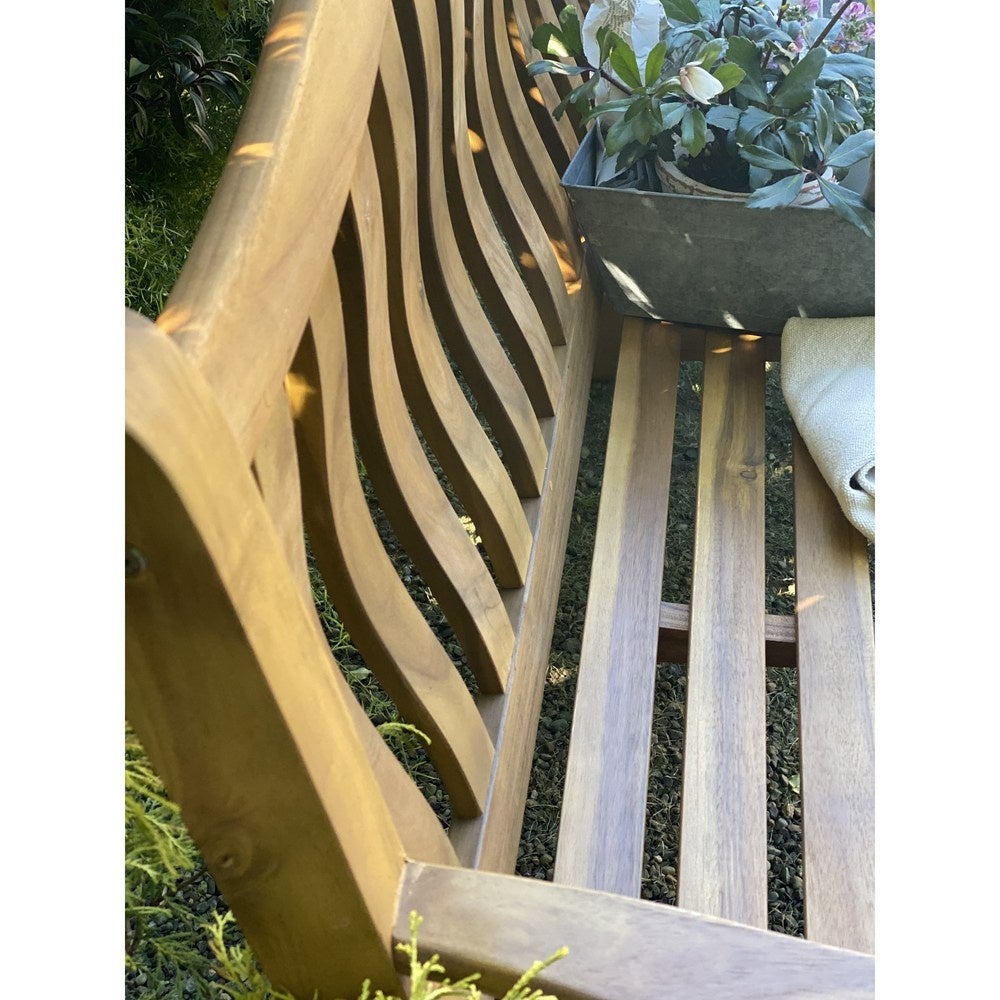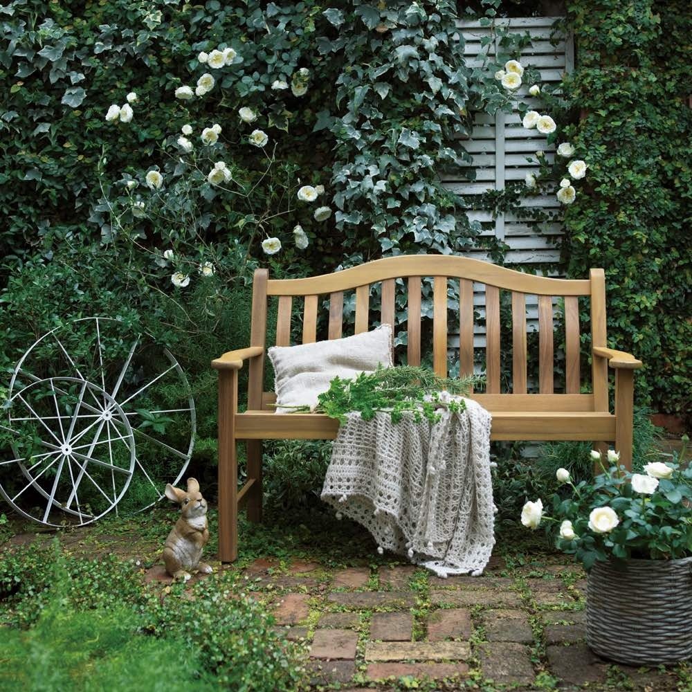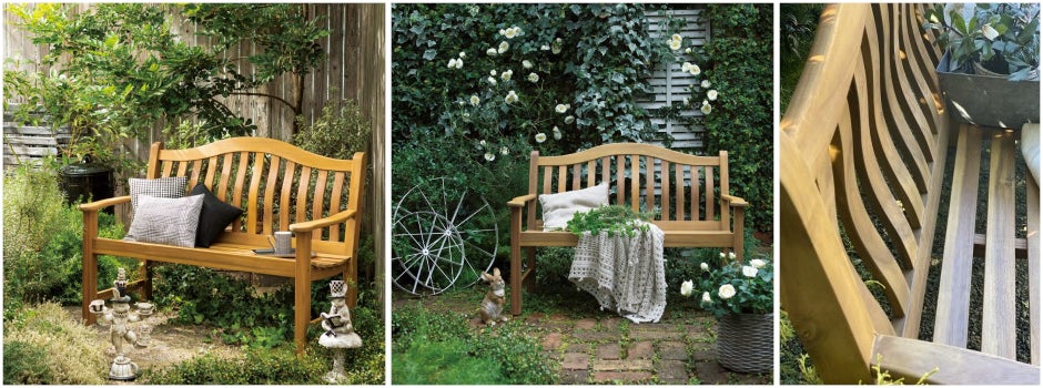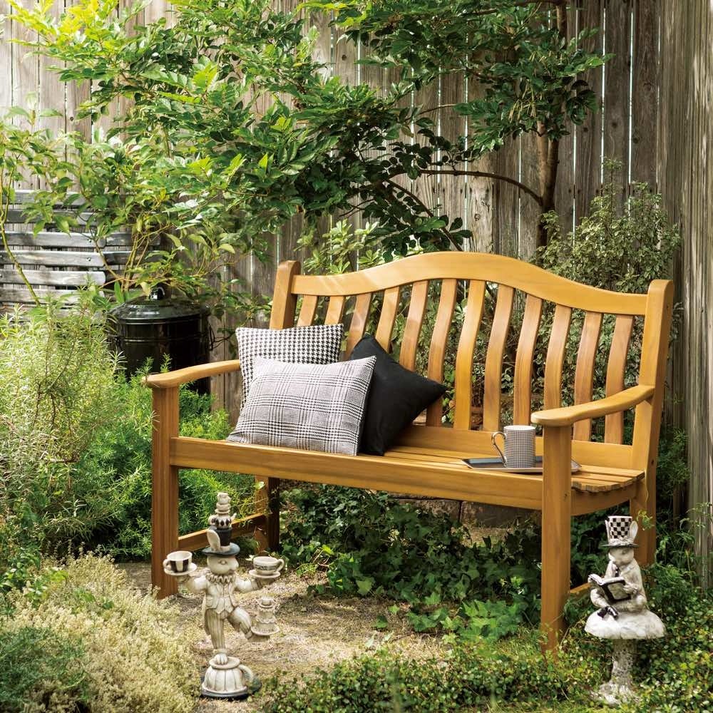 英国のスタイルを感じさせる、優美なフォルムの天然木ベンチ