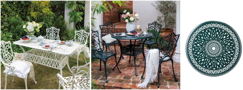 優美で品格漂う本格英国スタイル。鋳物アルミは高級感がありながら軽く、サビに強く扱いやすいのも人気のポイントです。