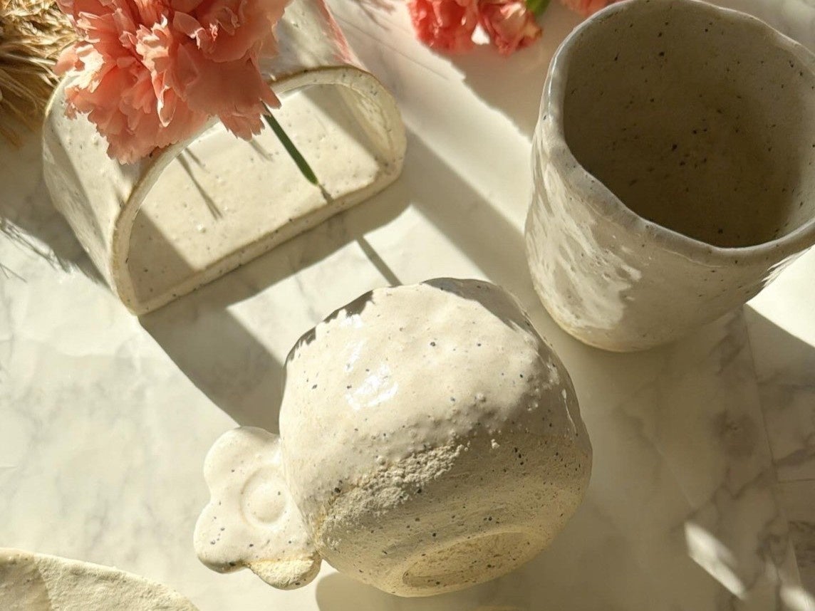 形にとらわれない歪みさやアシンメトリーなフォルムが生み出すあなたのライフスタイルに寄り添うアートのような陶器たち。手に取るたびに愛着が増すインテリアアイテムを作っています。色付けした陶器たちも暮らしを彩ります。
