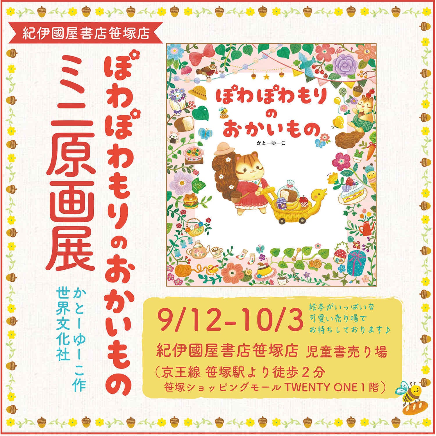 『ぽわぽわもりの おかいもの』の発売を記念して、ミニ原画展を開催いたします。