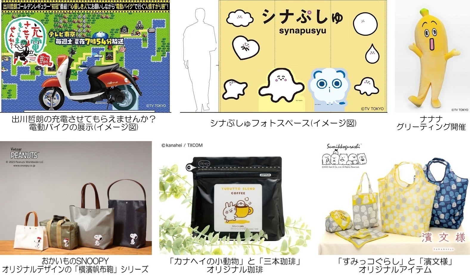 神奈川県の名品と、人気キャラクターやテレビ東京の人気番組がコラボレーションしたグッズの販売に加え、テレビ東京の人気番組「出川哲朗の充電させてもらえませんか?」で登場する電動バイク(レプリカ)の展示、テレビ東京の乳幼児向け番組「シナぷしゅ」のフォトスペース設置、3月19日(日)には、テレビ東京公式キャラクター「ナナナ」のグリーティングの実施等、様々なイベントを予定しております。