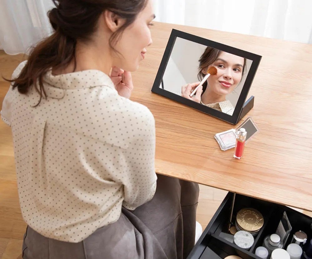 ミラーは取り外し可能。テーブルに置いて使うこともできます。