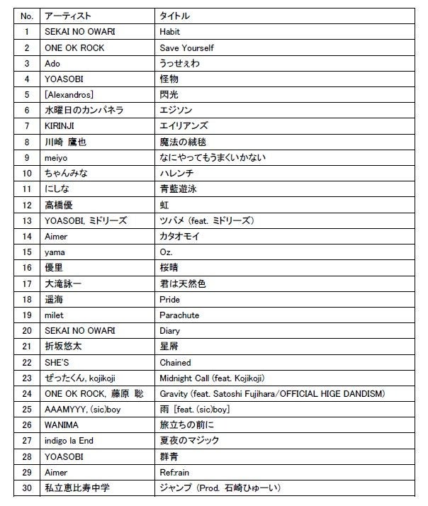 10月25日(火)よりAmazon Music Unlimitedに新たに追加された「空間オーディオ J-POP」のトラックリストは、以下の通りとなります。