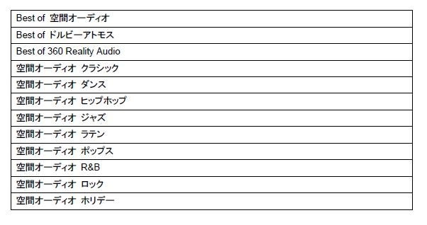 また、Amazon Music Unlimitedで配信中の空間オーディオのプレイリストは以下の通りとなります。