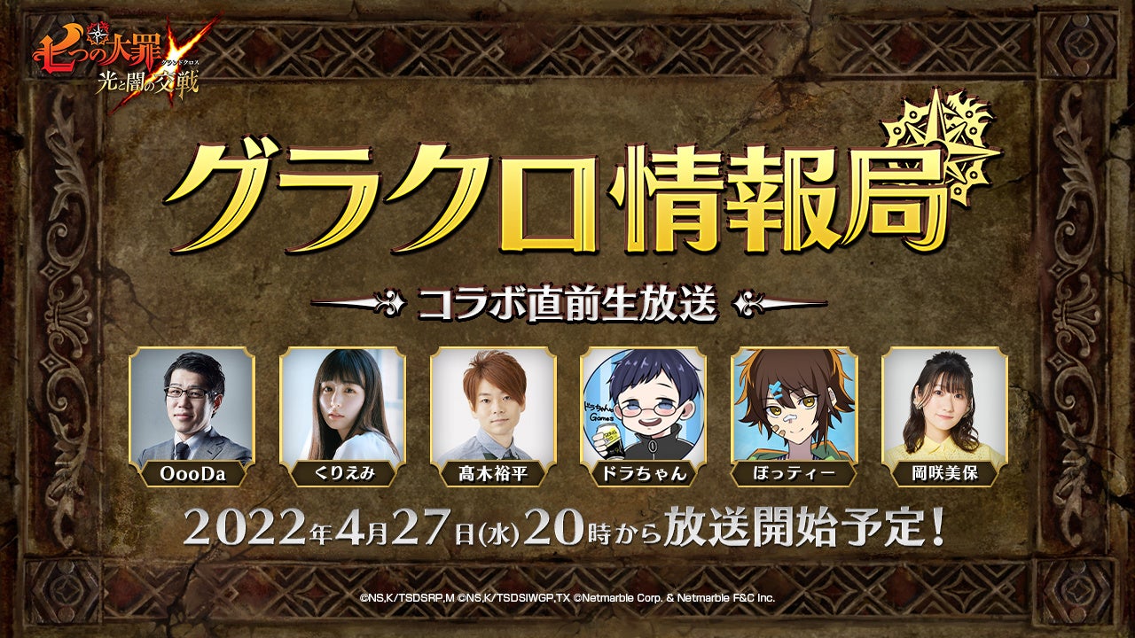 ◆グラクロの最新情報をお届けする公式番組「第33回グラクロ情報局 ~コラボ直前生放送~」―4/27 (水)20:00より生放送!