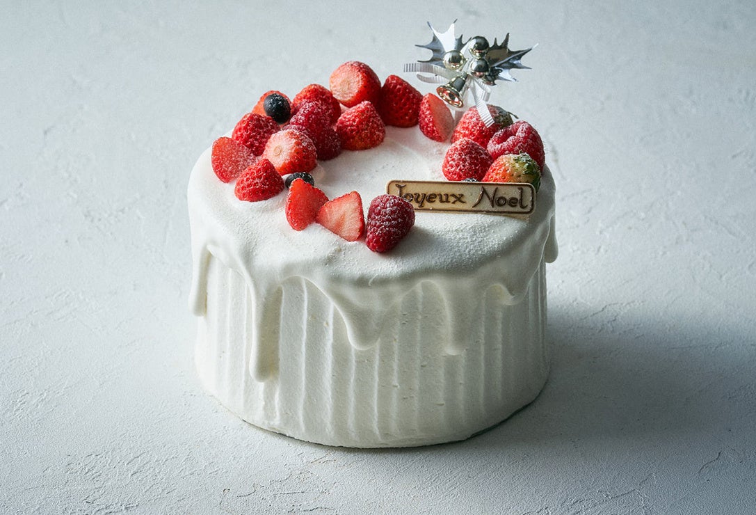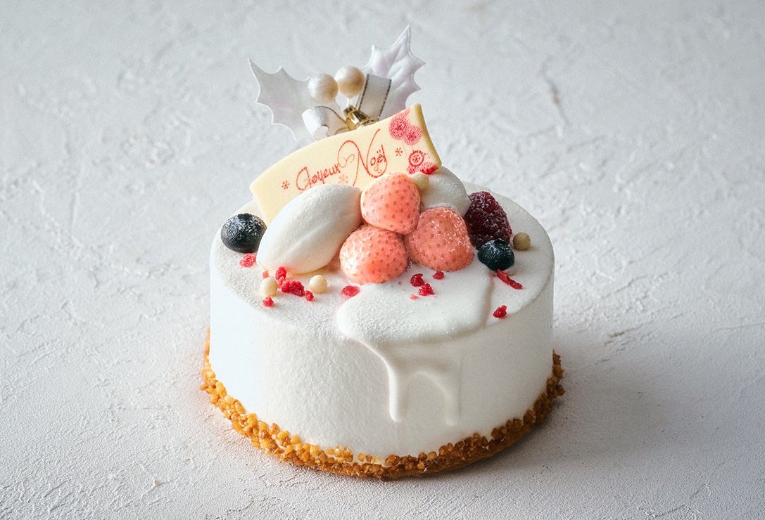 今年のクリスマスケーキは、全7種類をラインアップ。毎年好評の希少ないちご「黒いちご」や「白いちご」を使った王道のショートケーキはもちろん、宝石箱をイメージして虹色の鮮やかなプティガトーを散りばめたBOXケーキや、ナイフで切り分けるとフルーツがごろごろと出てくるケーキなど、大勢で集まるパーティにもおすすめの演出を加えたケーキも登場。