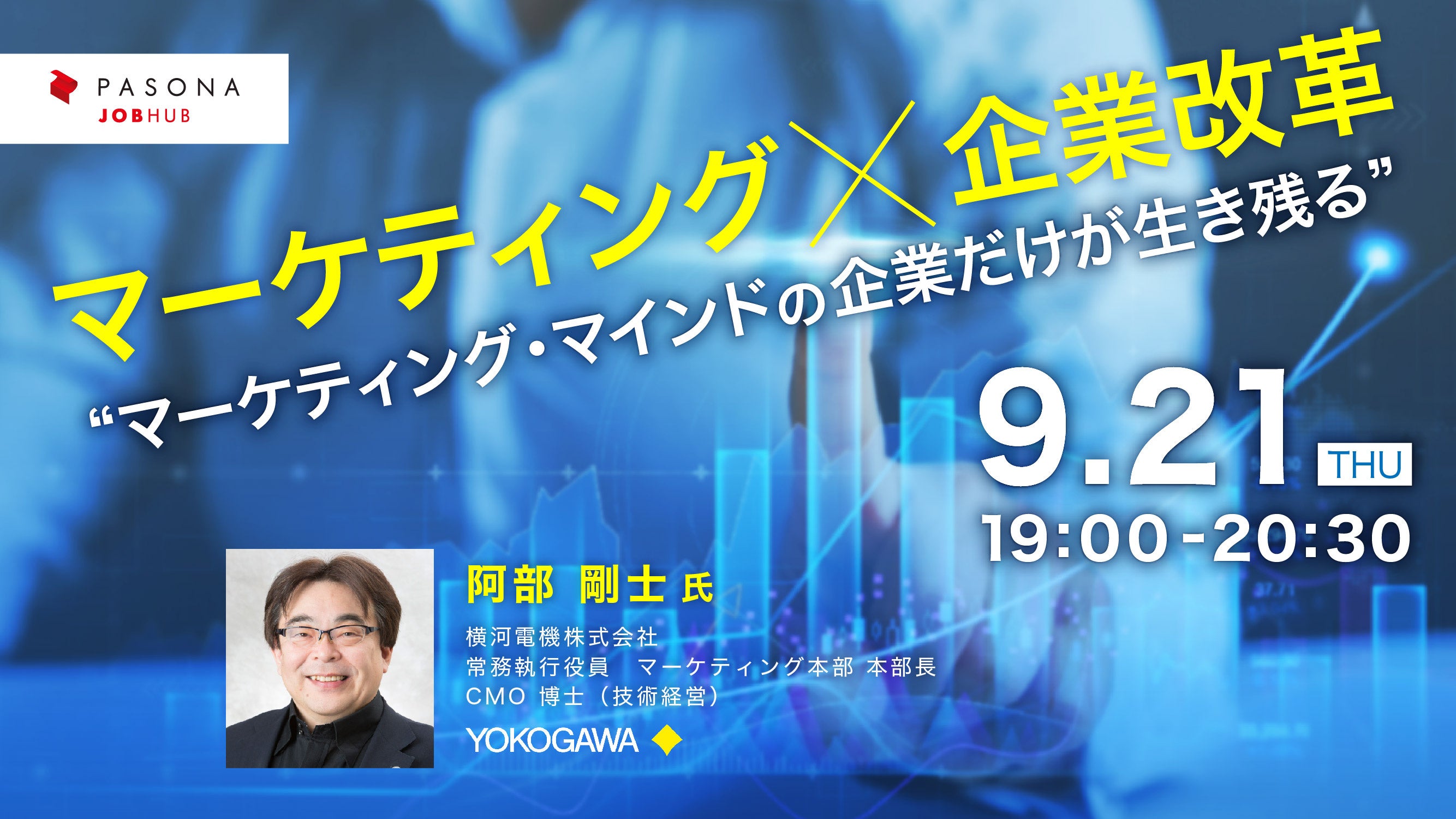 そこでこの度パソナJOB HUBが開催する本ウェビナーでは、横河電機株式会社にてマーケティング本部を統括し、企業文化改革の中核を担ってきた阿部剛士氏が登壇。「マーケティング・マインド」を組織全体に浸透させる方法や、人材育成・組織編成・採用等において注意するべき点について、これまでの取り組み事例をもとに解説いたします。