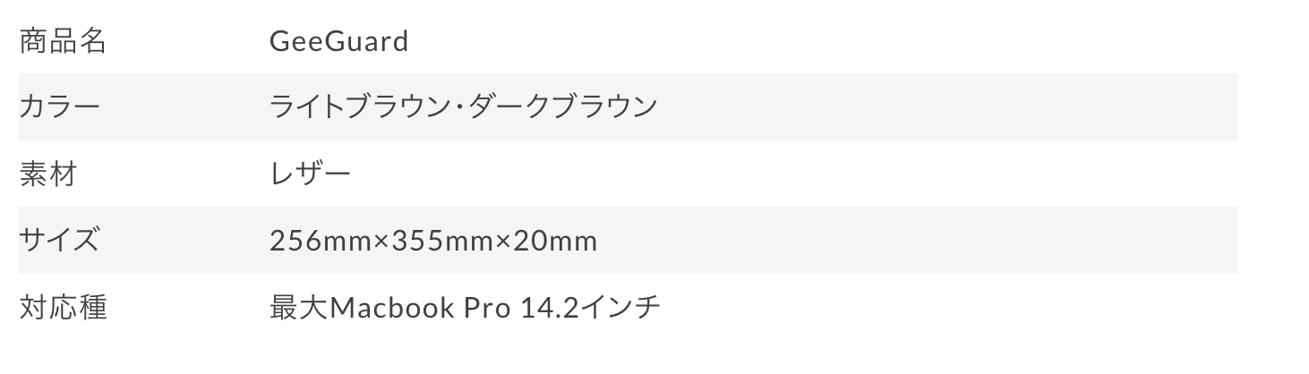 GeeGuardのサイズは、20mm×256mm×355mmと丁度良いサイズ感。Macbook Pro 14.2インチに対応しており、もちろんMacbook以外のデバイスの収納も可能!ラップトップ本体以外にも、仕事に必要な物などを一緒に収納することができるのでまとめて持ち運ぶことができます!