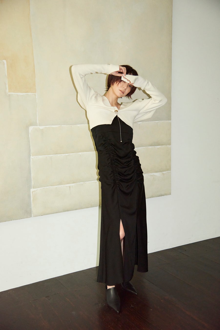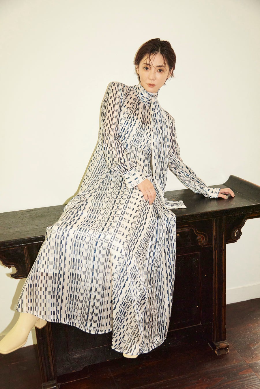 Knit cardigan ¥15,950 / Dress ¥23,100 / Necklace ¥4,950 / Shoes ¥23,100