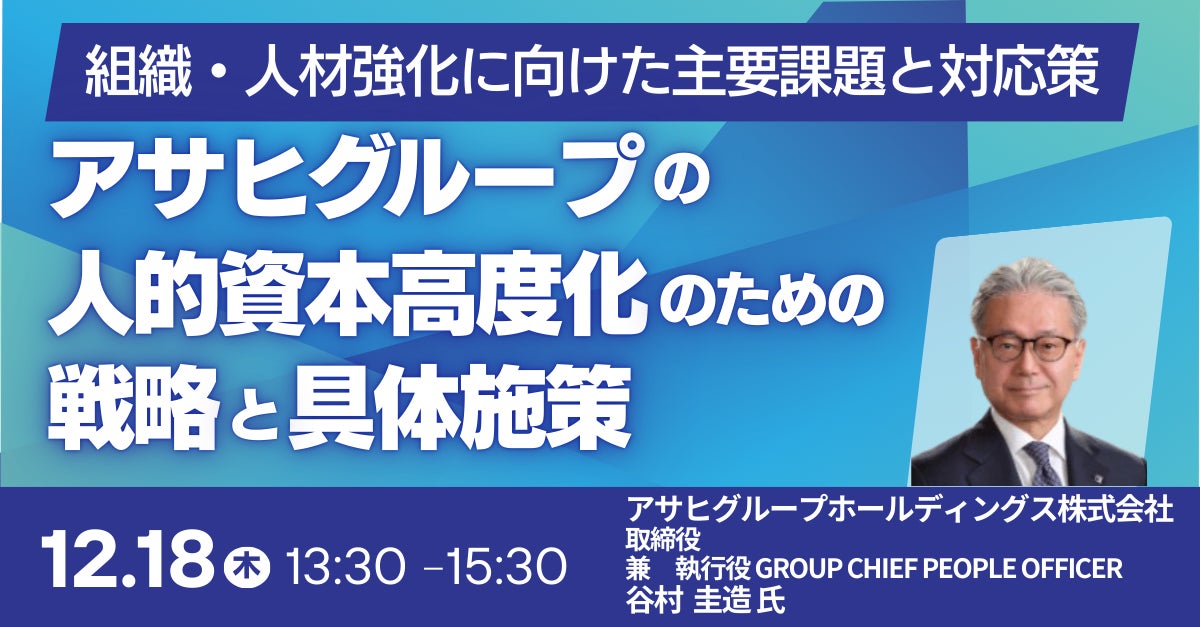 JPI(日本計画研究所)は、アサヒグループホールディングス株式会社 取締役 谷村 圭造 氏を招聘し、アサヒグループの人的資本高度化のための戦略と具体施策について詳説いただくセミナーを開催します。