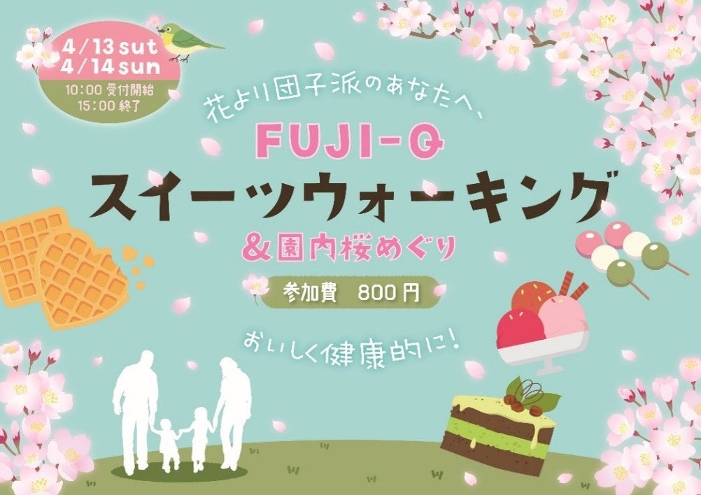 お友達やご家族と春の富士急ハイランドをおいしく巡って健康になる、「春のスイーツウォーキング」にぜひご参加ください。