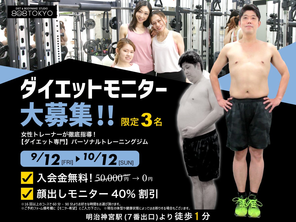 【ダイエットモニター】募集開始!! 入会金無料&コース料金40%割引|表参道ダイエット専門パーソナルトレーニングジム"808TOKYO"