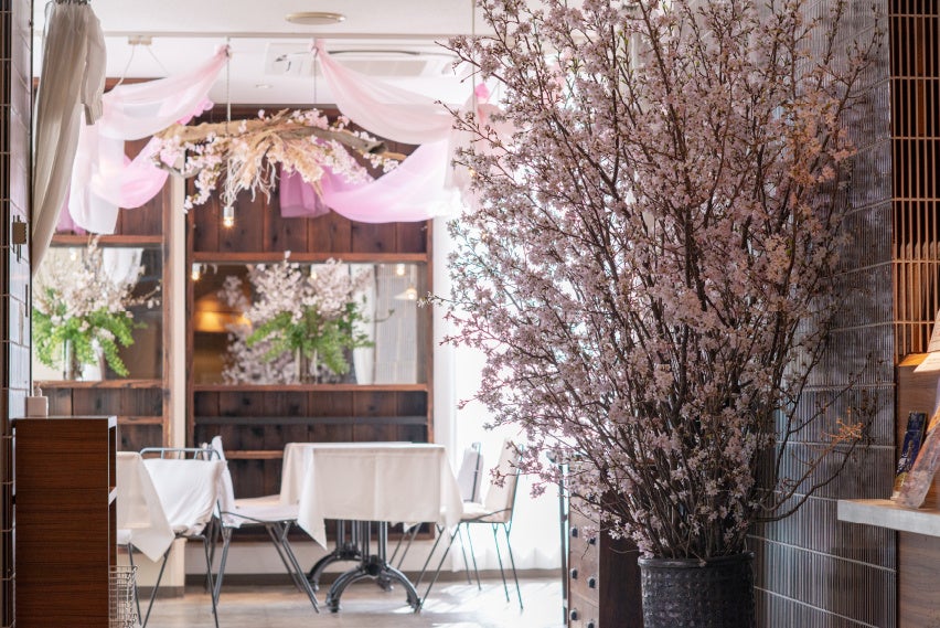 今回の桜装飾は、フルオーダーの花屋ブランド「有吉花店」の協力のもと、常に新鮮な花をご用意し、期間中はいつ訪れても桜の香りに包まれる贅沢な空間を演出いたします。