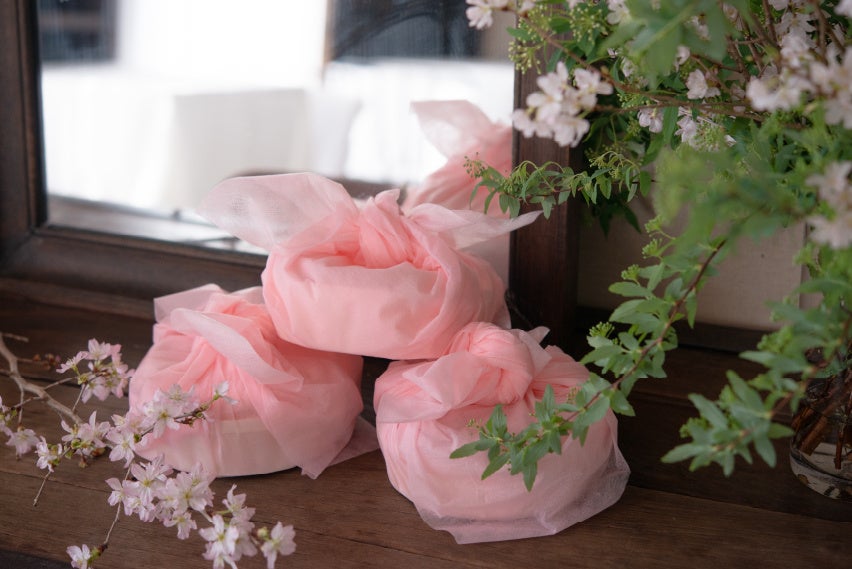 またテイクアウト限定で、お弁当を桜色の風呂敷に包んでお渡しいたします。屋外でのお花見にお供にもおすすめです。