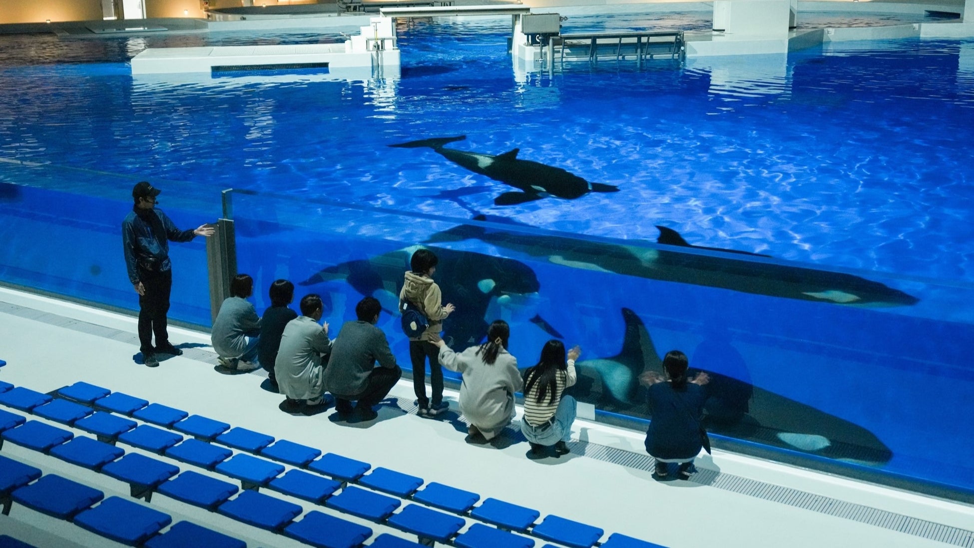 本ツアーでは、飼育員の解説を聞きながら約1時間かけて閉館後の水族館内を巡り、普段見ることのできない夜の生きものの姿を観察いたします。アマモの隙間にじっと隠れる魚や、ゆったりと泳ぐシャチなど、海の生きものたちは普段どのように体を休めているのか、館内全体を探検しながら観察する宿泊者限定の特別なツアーです。