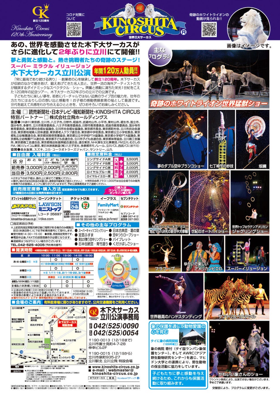 読売新聞社・日本テレビ・報知新聞社・KINOSHITA CIRCUS主催、『木下大サーカス 立川公演』が2022年12月24日 (土) ~2023年3月12日 (日)に立川駅北 立川立飛 特設会場(東京都立川市泉町935-27)にて開催されます。