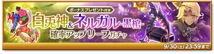 ■ドロ率UP効果付き限定武器をGETしよう★「白兎神&ネルガル-黒棺-確率アップ リーフガチャ」販売中!