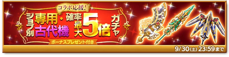■即戦力を手に入れる大チャンス!「ジョブ別 コラボ応援! 専用・古代機確率最大5倍ガチャ」販売中!
