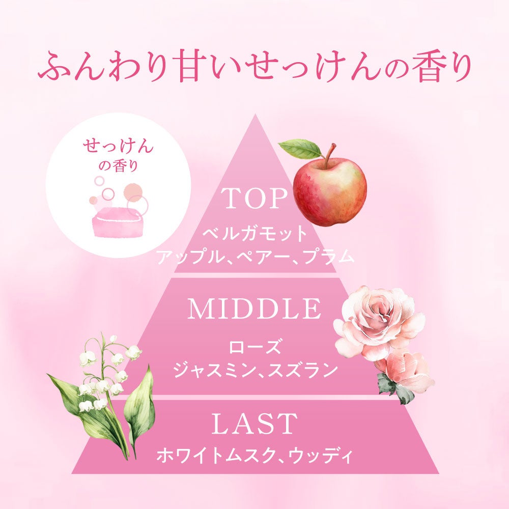 ふんわり甘く包みこむ、せっけんの優しい香り。