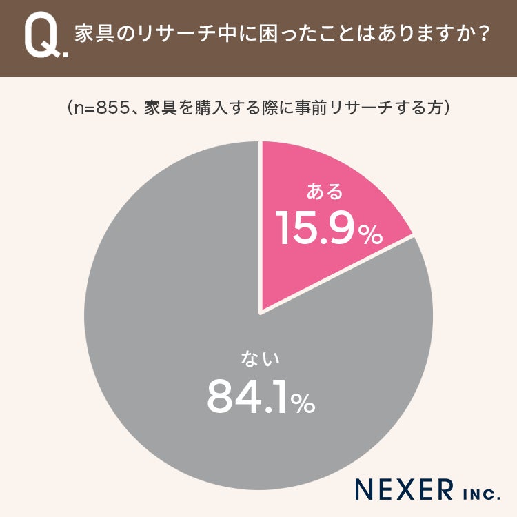 ■15.9%が、家具のリサーチ中に困ったことが「ある」