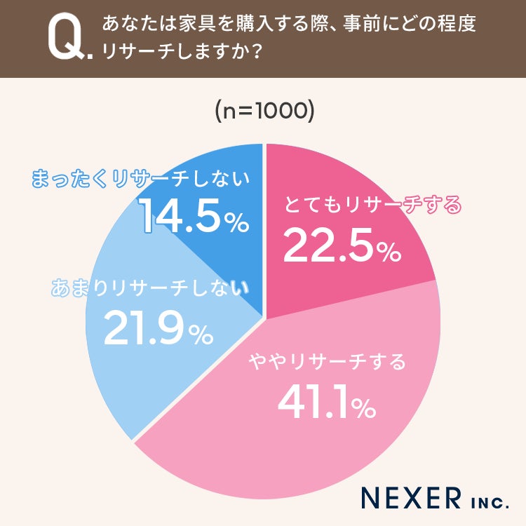 家具を購入する際、事前にどの程度リサーチするかに関する調査を行いました。