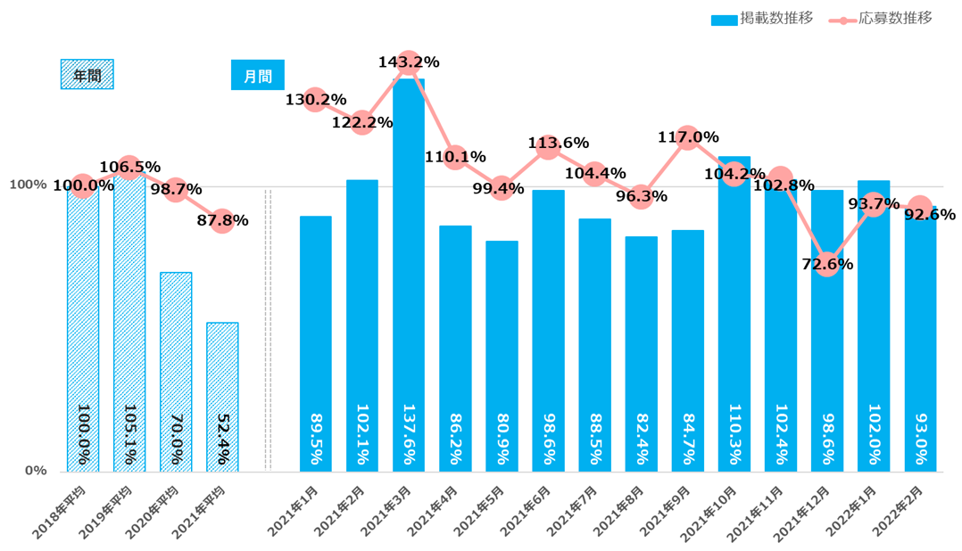 『2022年2月度 正社員求人掲載数・応募数推移レポート』