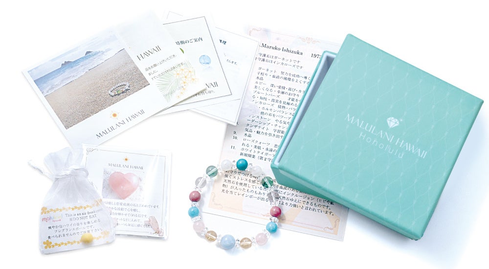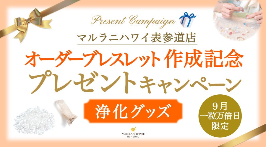ハワイ発の天然石アクセサリーブランド「Malulani Hawaii(マルラニハワイ)」表参道店では、9月中の一粒万倍日に、表参道店でオーダーブレスレットをお作りいただいた方限定で、浄化グッズをプレゼント致します。