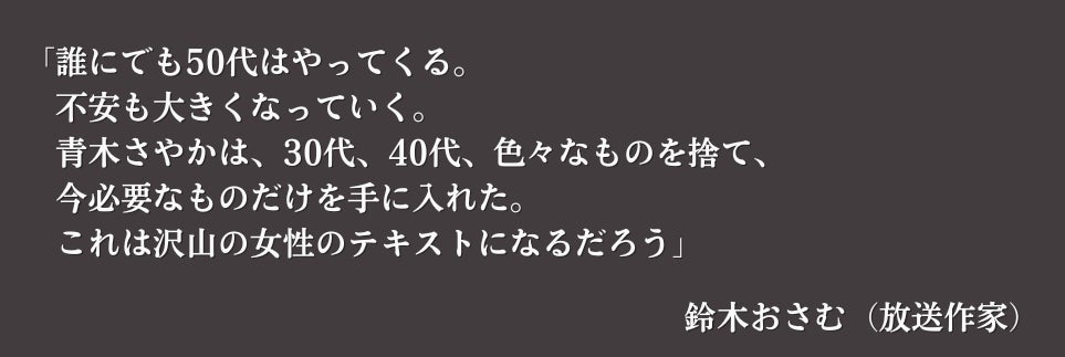 【発売前重版決定‼】青木さやかさん、次なる壁は”オトコ”⁉ アラフィフを経験する、すべての女性たちに贈る、最新書下ろしエッセイ集『50歳。はじまりの音しか聞こえない』9月22日(金)発売。