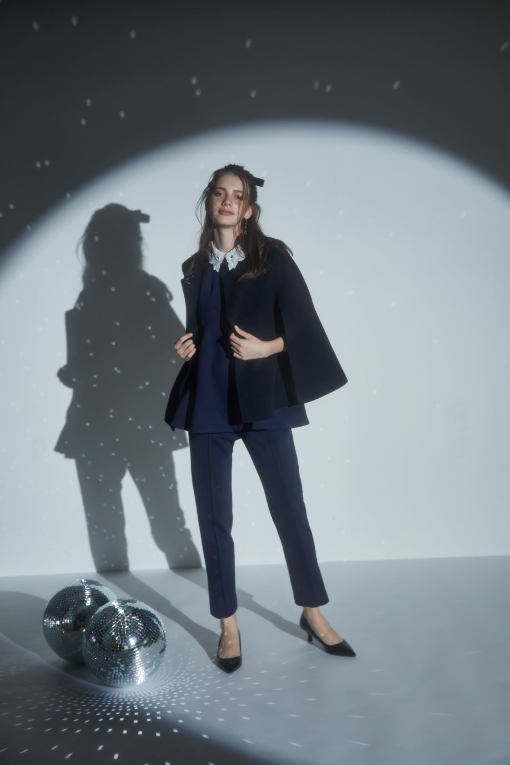クラシカルな美しさを引き立ててくれるデザインなので、真面目な印象のネイビーを選んでも女性らしいオーラは健在。前回のデザインより少しだけ袖の幅を狭め、ケープなどのアウターも軽やかに合わせられるように。羽織を合わせてロングシーズン活躍します。