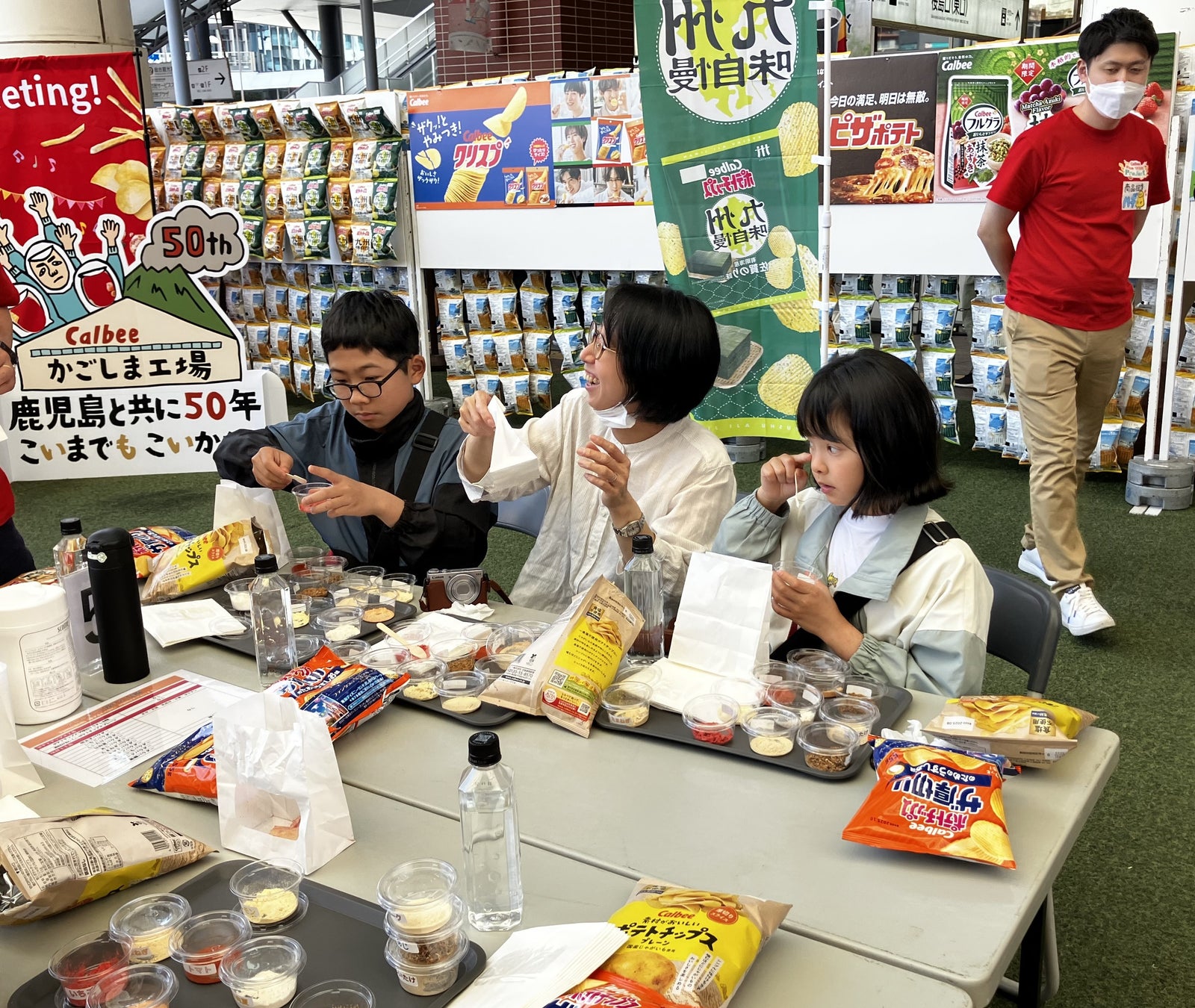 2025年度のCalbee『Fan With! Project』の第1回は、4月29日(火・祝)に鹿児島県鹿児島市で「ポテトチップス九州味自慢」をテーマにしたファンミーティングを開催しました。ファンの皆さま37名が参加し、プレーンのポテトチップスに様々な味を付けて試食する体験や、店頭での販促物づくりなどを楽しみました。