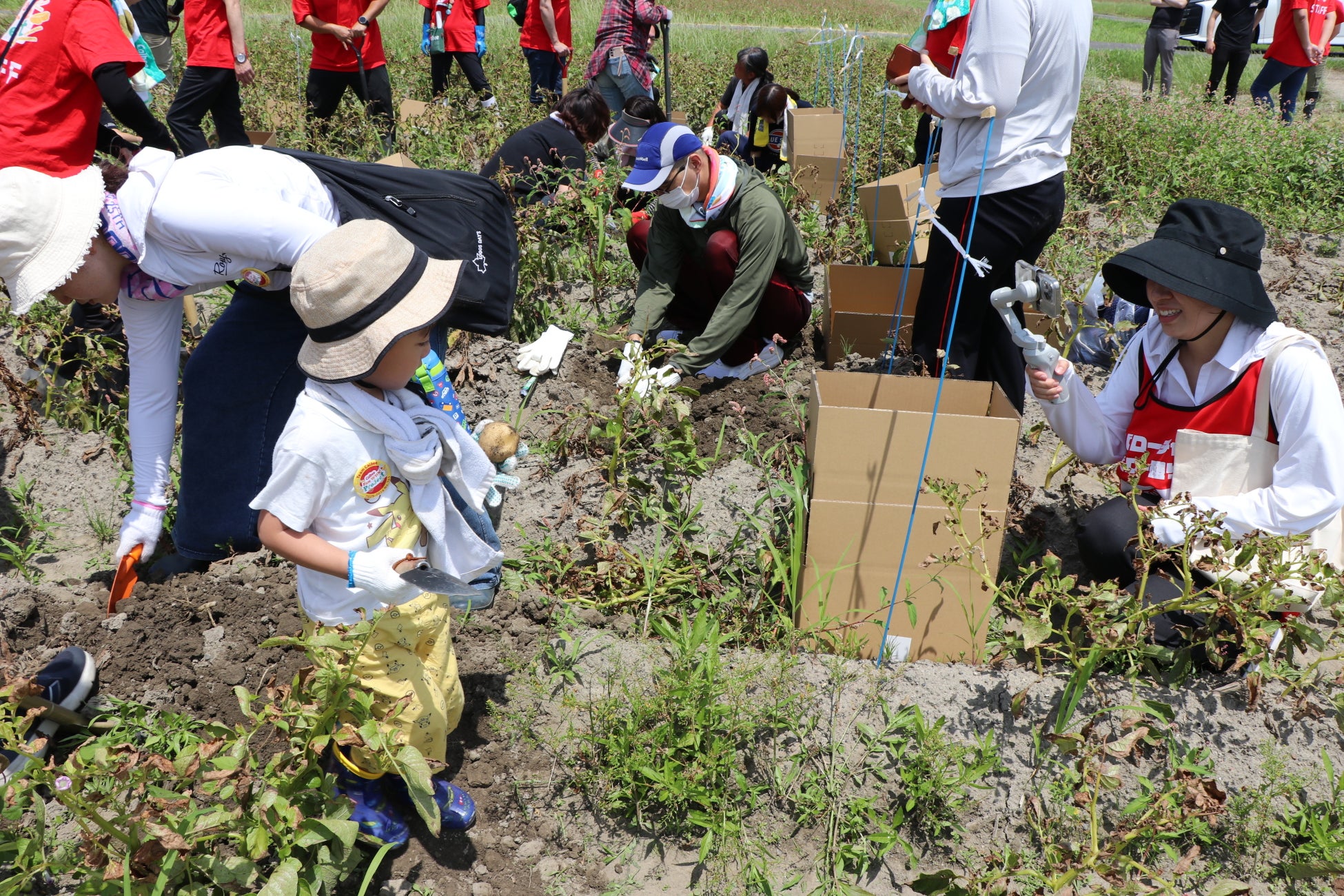 第2回は6月7日(土)に福岡県朝倉市の畑、第3回は同月21日(土)に岐阜県海津市の畑で、じゃがいもの収穫体験イベントを実施しました。会場はカルビー商品の原料となるじゃがいもを生産しているカルビーグループの契約生産者の畑です。2日間で総勢約120名のファンの皆さまがじゃがいもの収穫を楽しみました。