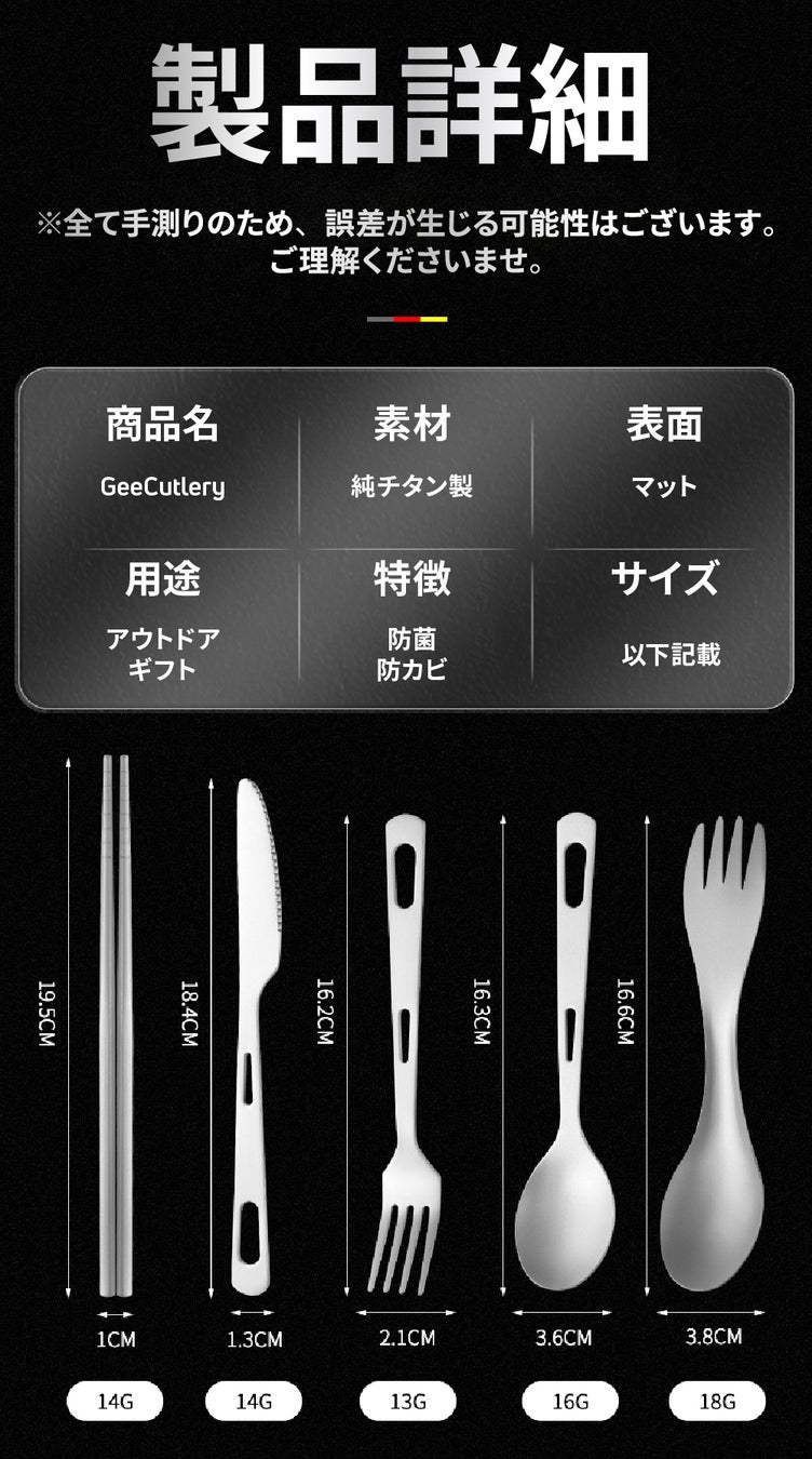 「GeeCutlery」は純チタン素材を使用しているので耐久性に優れ、長く使うことができます。