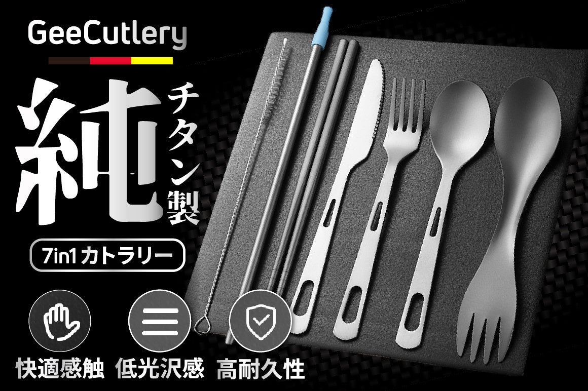 【日本初上陸記念!30セット限定62%オフ】7in1でわずか120gの超軽量!一生モノと言われる純チタンカトラリーセット。低光沢でスタイリッシュな「GeeCutlery」クラウドファンディング開始