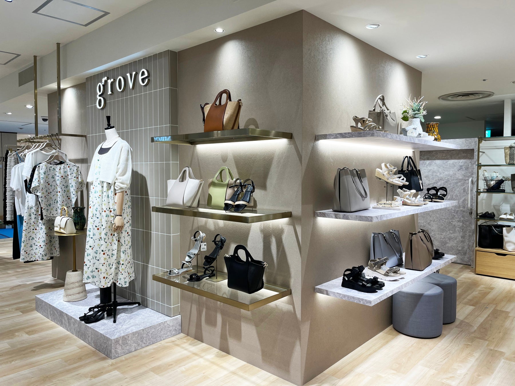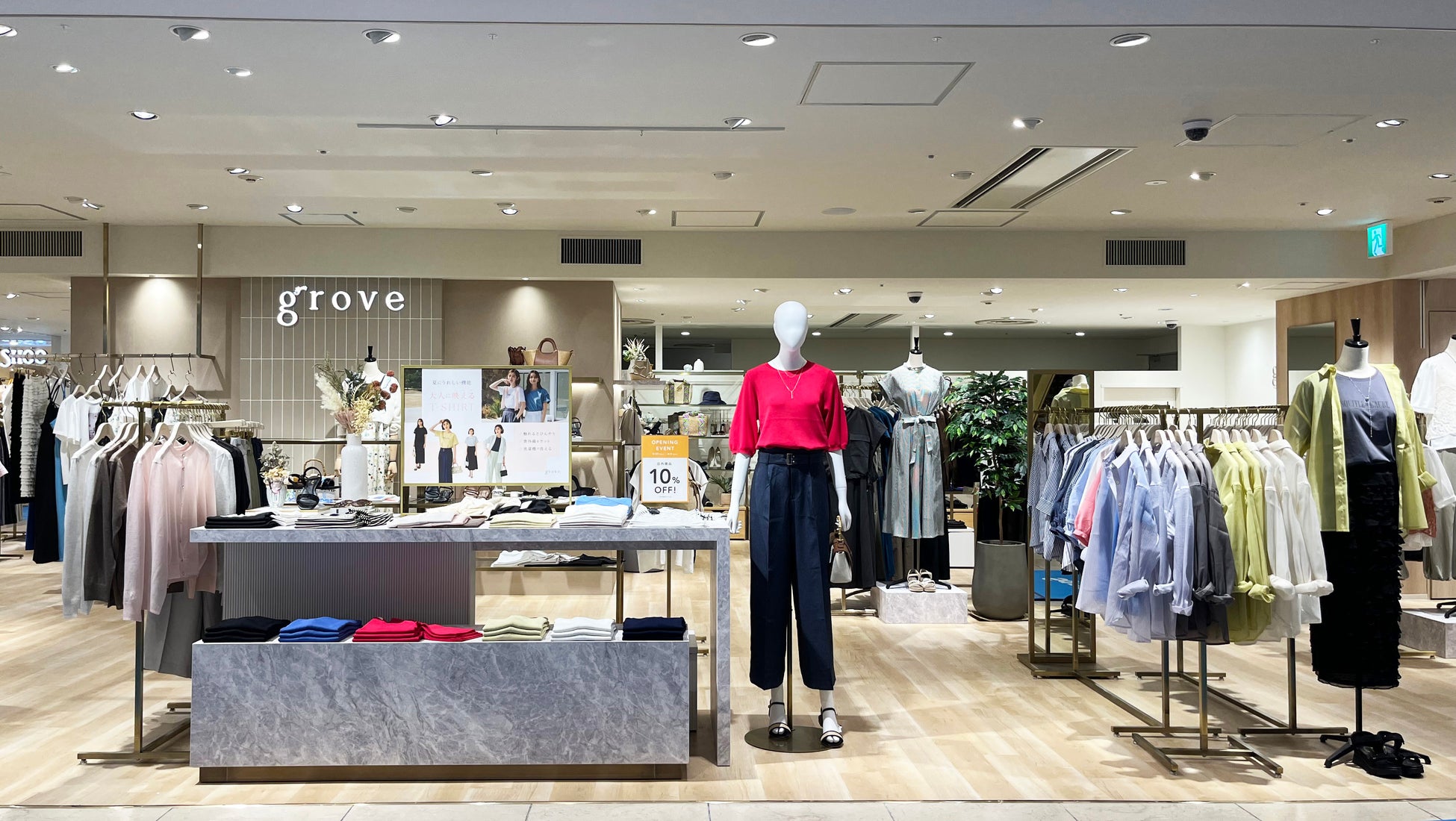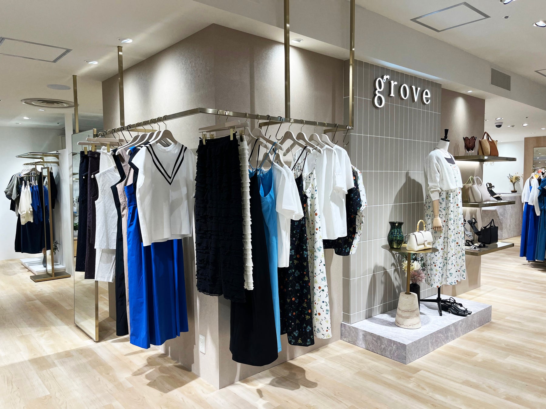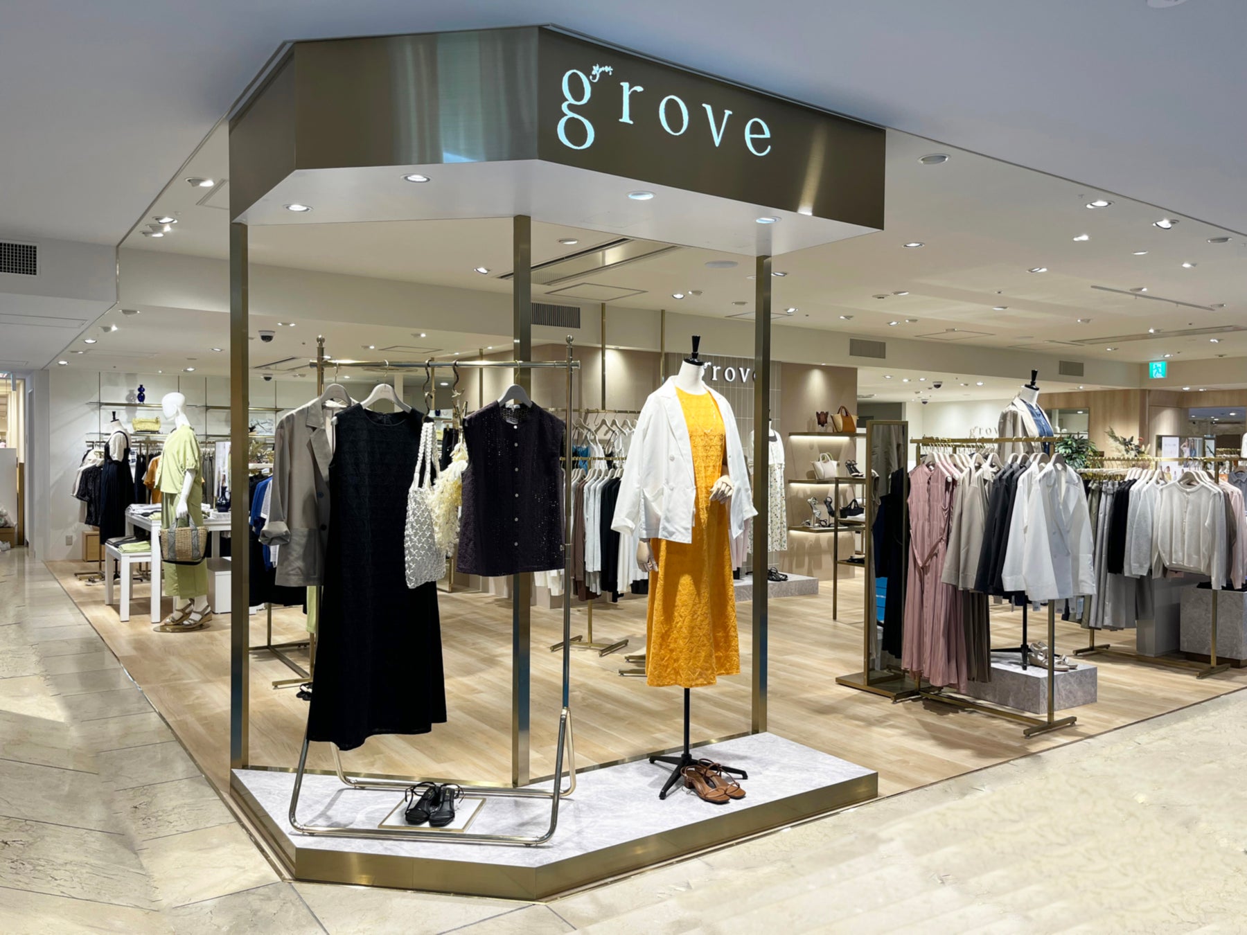 全国のショッピングセンターを中心に、オフィスシーンからデイリーまで活躍するフェミニンカジュアルを展開するブランド「grove(グローブ)」は、幅広い女性に支持される着回し力の高いトレンドアイテムを多数ご提案しております。