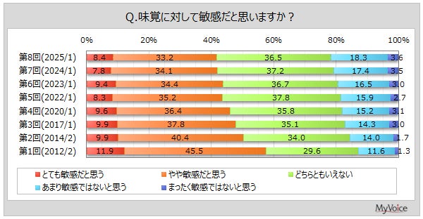 マイボイスコム株式会社(東京都千代田区、代表取締役社長:高井和久)は、8回目となる『味の好み』に関するインターネット調査を2025年1月1日~7日に実施しました。