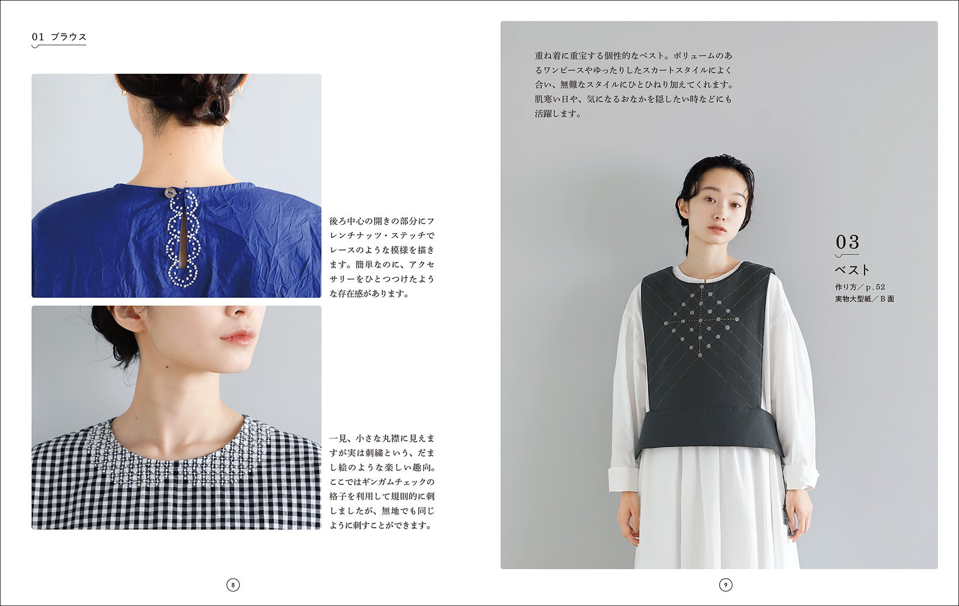シンプルな服に手仕事がひとつ加わるだけで、アクセサリーをひとつ加えたようなさりげない大人のおしゃれが楽しめます。