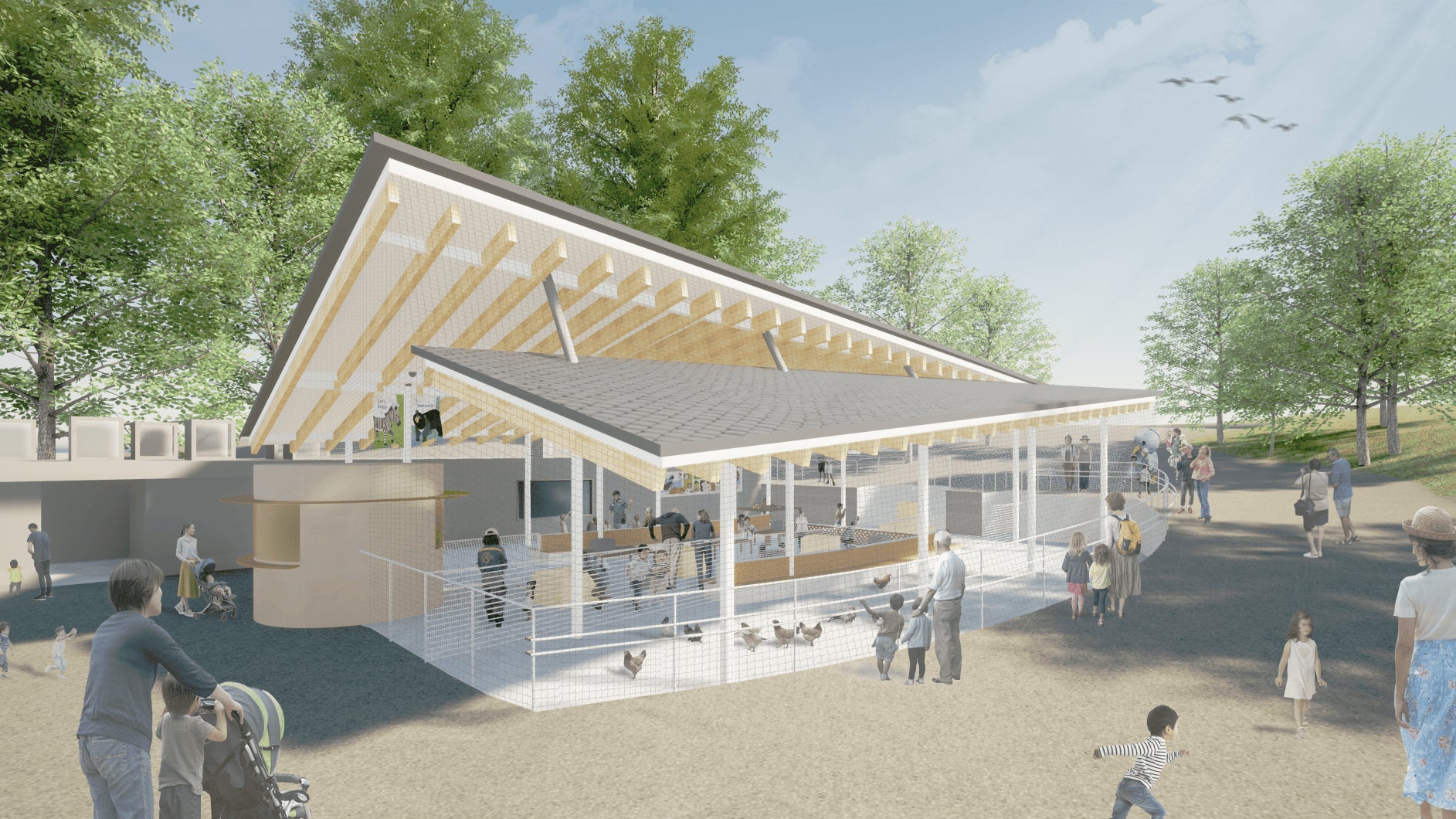 この度、野毛山動物園リニューアル第1弾として、なかよし広場や屋内休憩棟、トイレ棟が新しくなります。