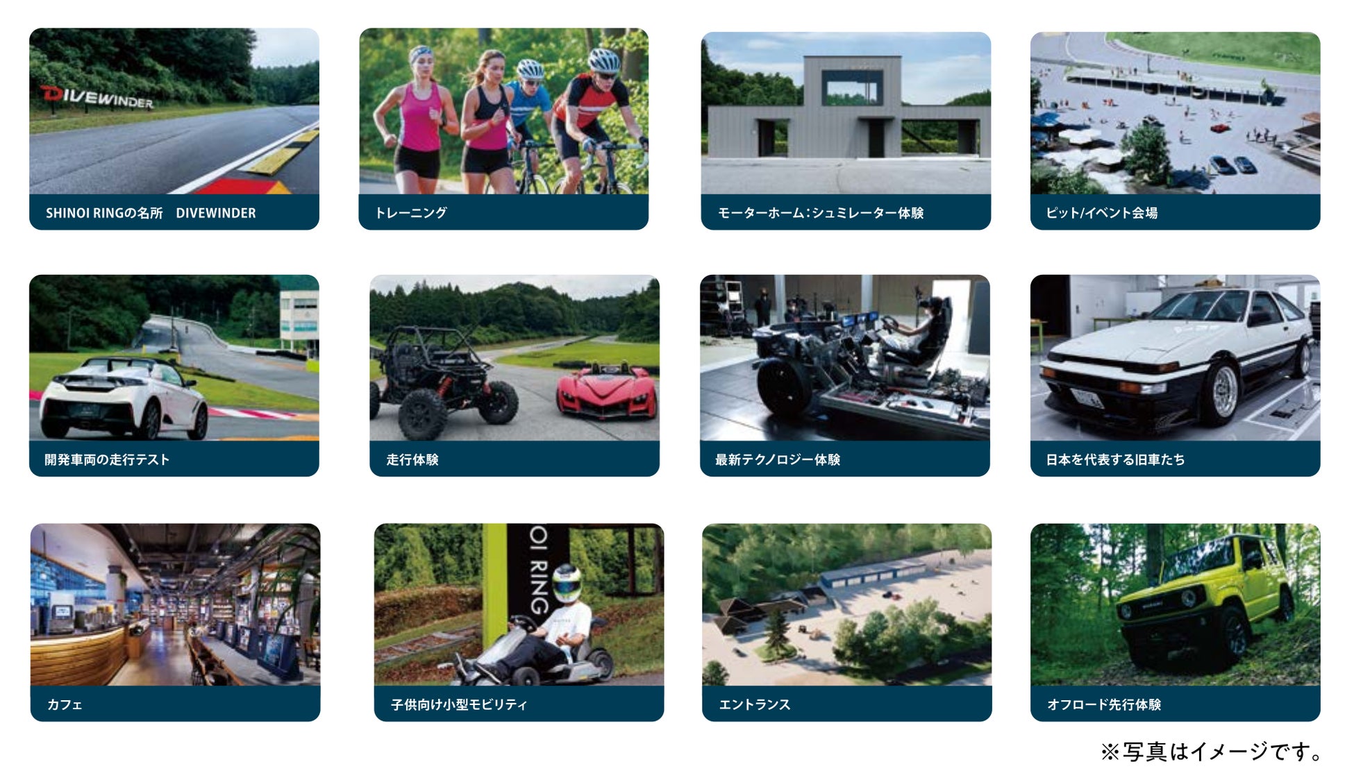 また、従来のクルマ好き、レースファンだけでなく、ランニングをはじめとしたスポーツを愛する人々、ファミリー層、そして地域住民にも開かれた施設をめざします。クラブハウスでは、モータースポーツ関連書籍を揃えた「BOOK&カフェ」でゆったり過ごせるほか、子ども向け電動カート体験、往年の名車の試乗体験など、家族でモビリティ文化に触れられるコンテンツを用意しています。