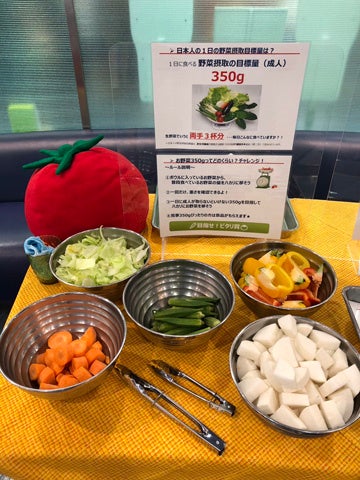 さらに、野菜を使用して1日に必要な野菜350gを体感していただくゲームや推定野菜摂取量がチェックできる体験などご家族皆さまでお楽しみいただけるイベントも開催します。