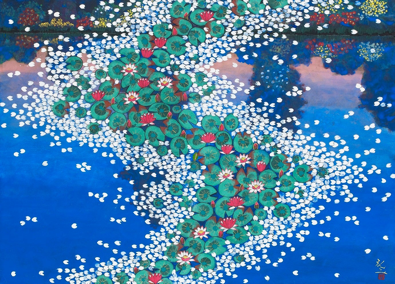 日本画家・平松礼二先生が、2021年、フランスの芸術文化勲章シュヴァリエを受勲されました。平松先生は、1994年にパリのオランジュリー美術館でモネの大作『睡蓮』と出あい、その後『印象派ジャポニスムを検証する旅』により新境地を開拓されました。そして2013年にジヴェルニー印象派美術館の「平松礼二・睡蓮の池・モネへのオマージュ展」開催、その後ドイツ・ベルリン国立アジア美術館への巡回、2018年のジヴェルニー印象派美術館の再度の開催など大成功をおさめ、国内にとどまらず、海外からも高い評価を得ています。その長年にわたる画業の研究、発表の功績が受勲につながっています。この度、それを記念して、小品から屏風までの作品を一堂に展覧いたします。