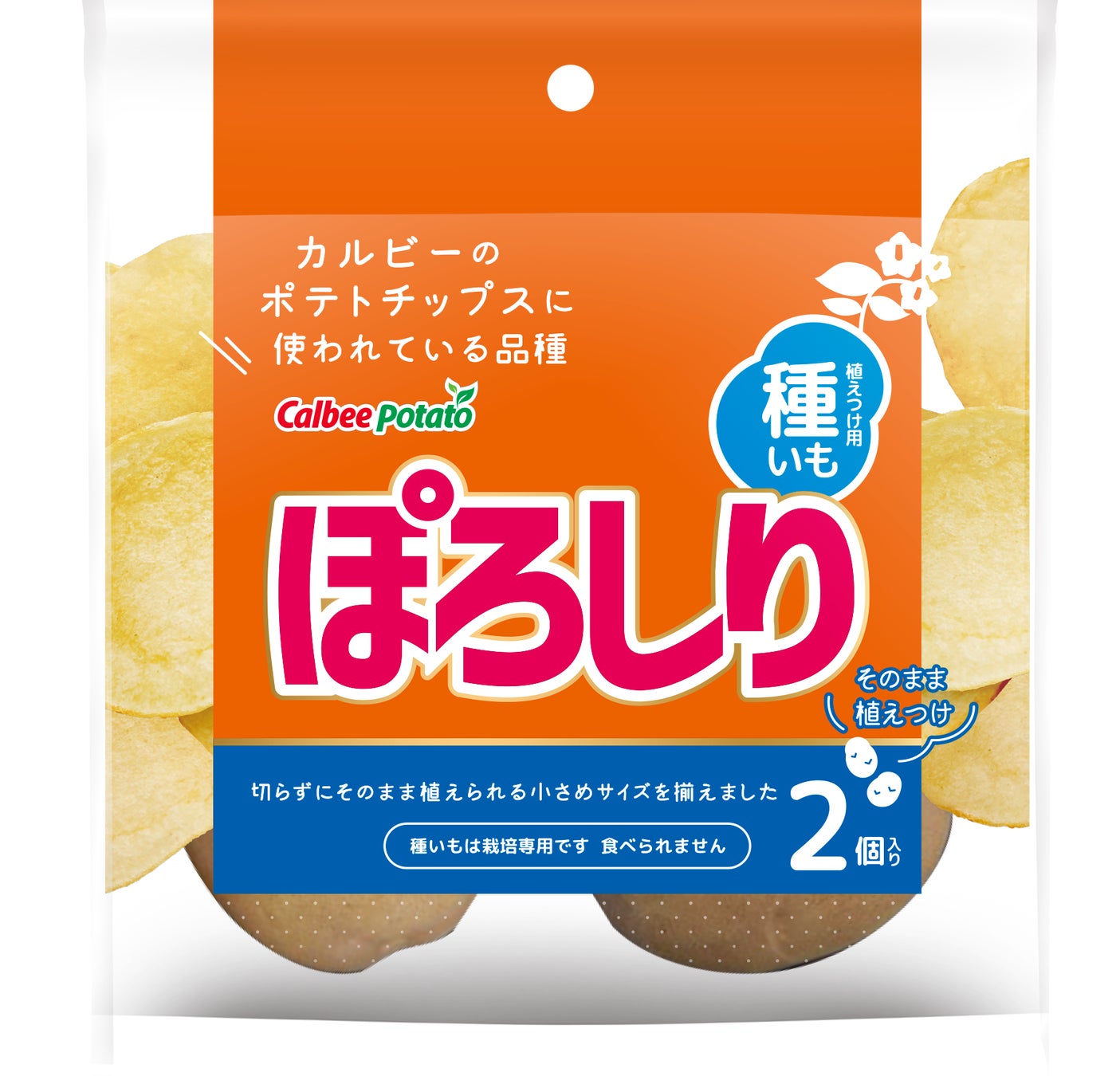 栽培用種芋「ぽろしり」は、カルビーポテトが10年以上かけて開発したオリジナルのじゃがいも品種です。切らずにそのまま植えつけるのに適したサイズを揃えました。カルビーポテトではこの商品で初めてホームセンターでの販売に取り組みます。カルビーのオウンドメディア「じゃがいもDiary」にて、「ぽろしり」に関する記事を掲載しています。
