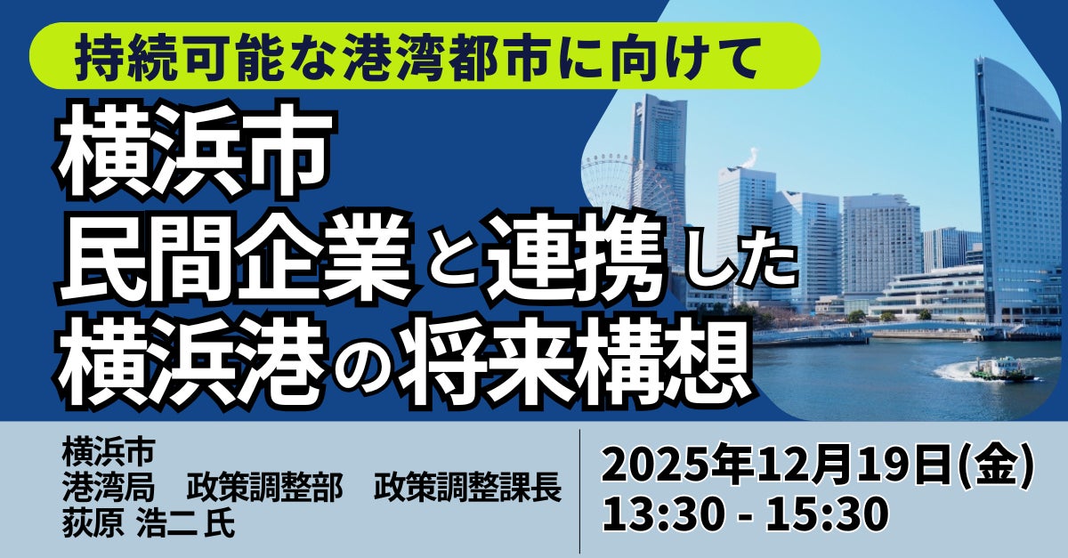 【JPIセミナー】横浜市「民間企業と連携した横浜港の将来構想 ~船舶への陸上電力供給、データセンター進展などの新たな産業基盤へ~」12月19日(金)開催