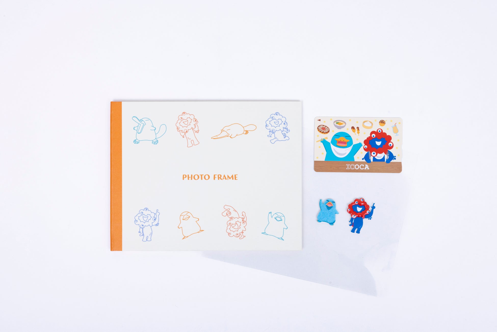 優しい線画で描かれたイコちゃん&ミャクミャクが台紙に登場。中面はシンプルデザイン+キャラクターシールで自由にアレンジ可能。ICOCAと写真を飾れば、思い出のフォトフレームに早変わり!