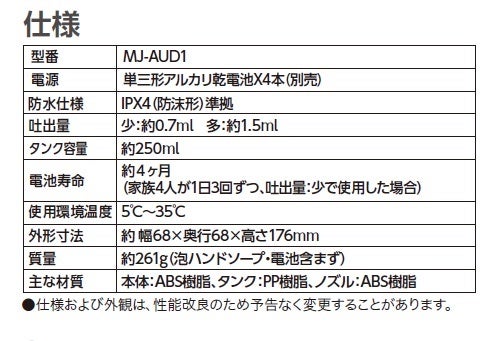 商品名 : 泡ハンドソープ用オートディスペンサー
