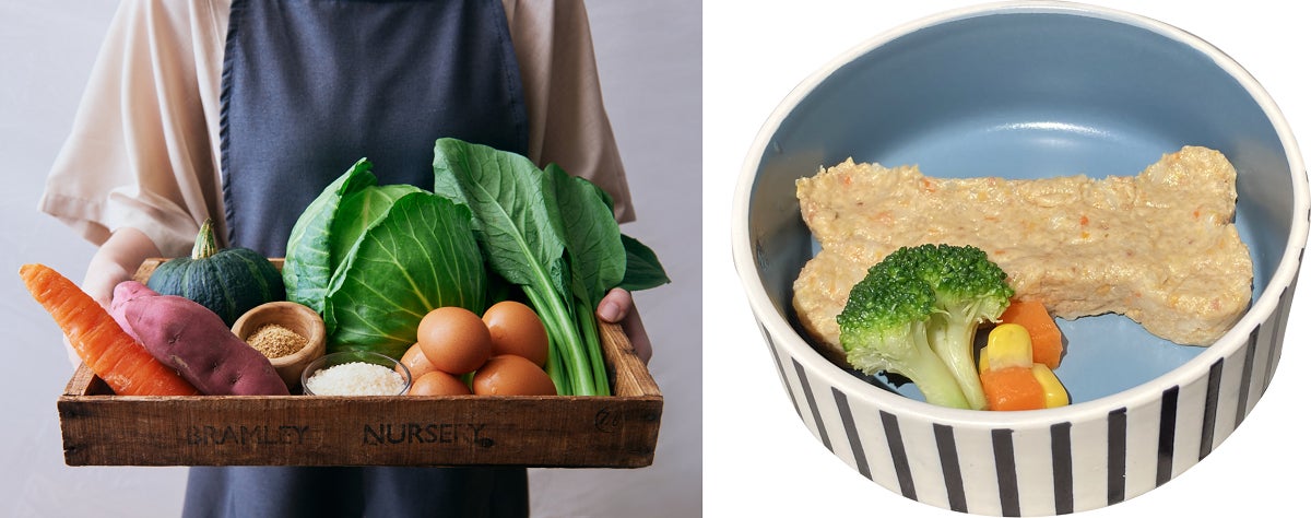 国産・保存料無添加・獣医師開発・家族クオリティのフレッシュペットフードの「ペトコトフード」を使用した特別メニューを提供。味はポーク、フィッシュの2種類をご用意。テラス席でワンちゃんと一緒にお食事を楽しめます。