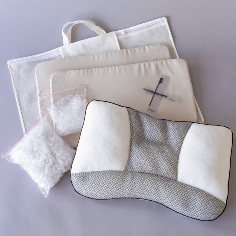 高さの合わない枕で身体に負担がかかると、睡眠の質が低下して目覚めの疲れや首肩の不調を招く可能性があります。しっかりと身体を休めるためには自分に合った枕を使うことが大切です。そこで、既製品がフィットしない、オーダー品は高価なうえに店舗に出向くのも大変という方に向けて『自宅で簡単ぴったり!セミオーダーピロー』を企画開発し発売いたしました。