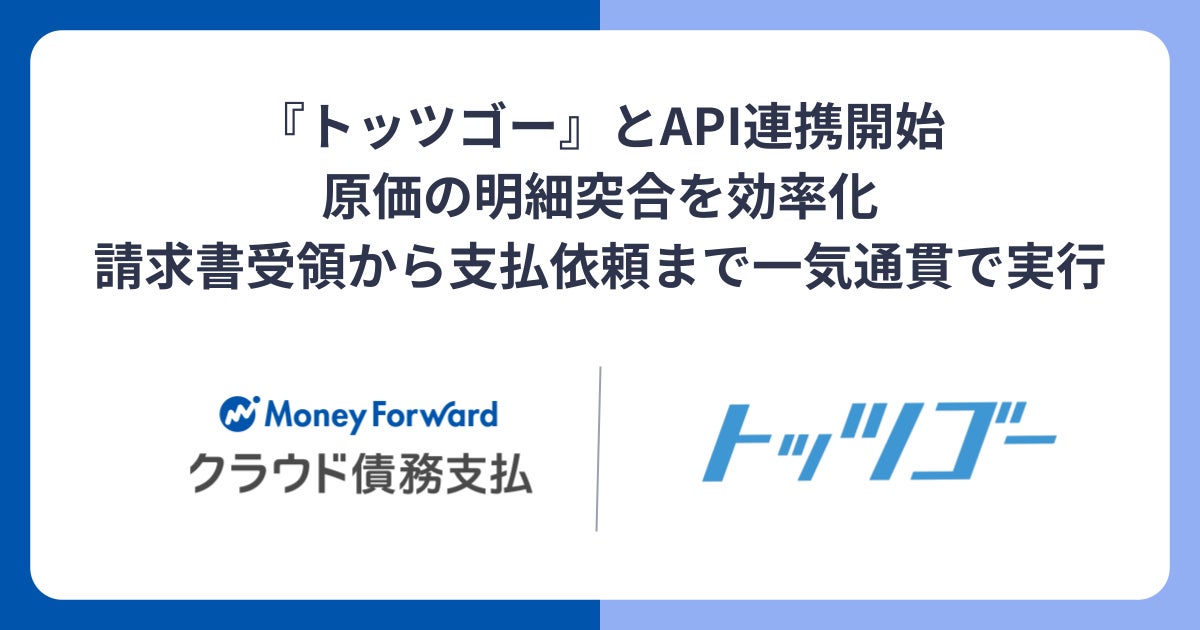 株式会社マネーフォワードは、『マネーフォワード クラウド債務支払』において、TISインテックグループの株式会社ネクスウェイ(以下、ネクスウェイ)が提供する、クラウド請求書受領・明細突合サービス『トッツゴー』とのAPI連携を開始します。